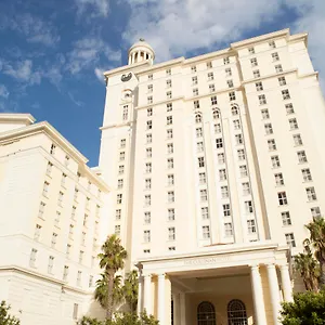 This grand property has 390 rooms appointed with a flat-screen TV with satellite channels, as well as self-catering options such as coffee and tea making facilities. They are furnished with luxurious decor. A shower, along with such comforts as guest toiletries, are also provided. The hotel offers spectacular views of the city.